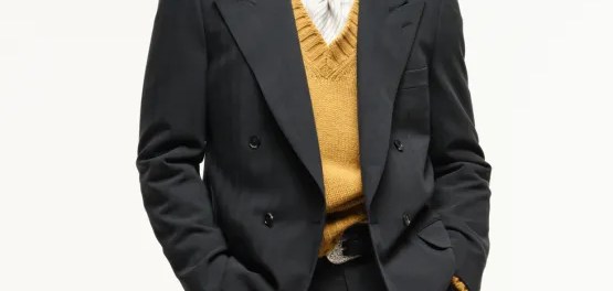 Incorporating that sweet memory – while seeking to expand the wardrobe he provides to an ultra-high-net-worth clientele and C-suite businessmen – Benan had rib-knit polos in Klein blue or bubblegum pink, mustard plunging V-necked sweaters, turquoise knit hoodies and burnished burgundy shawl-collared cardigans layered under sartorial pieces. #mensfall #coolcorperateguys #fashion #wqeb973newz